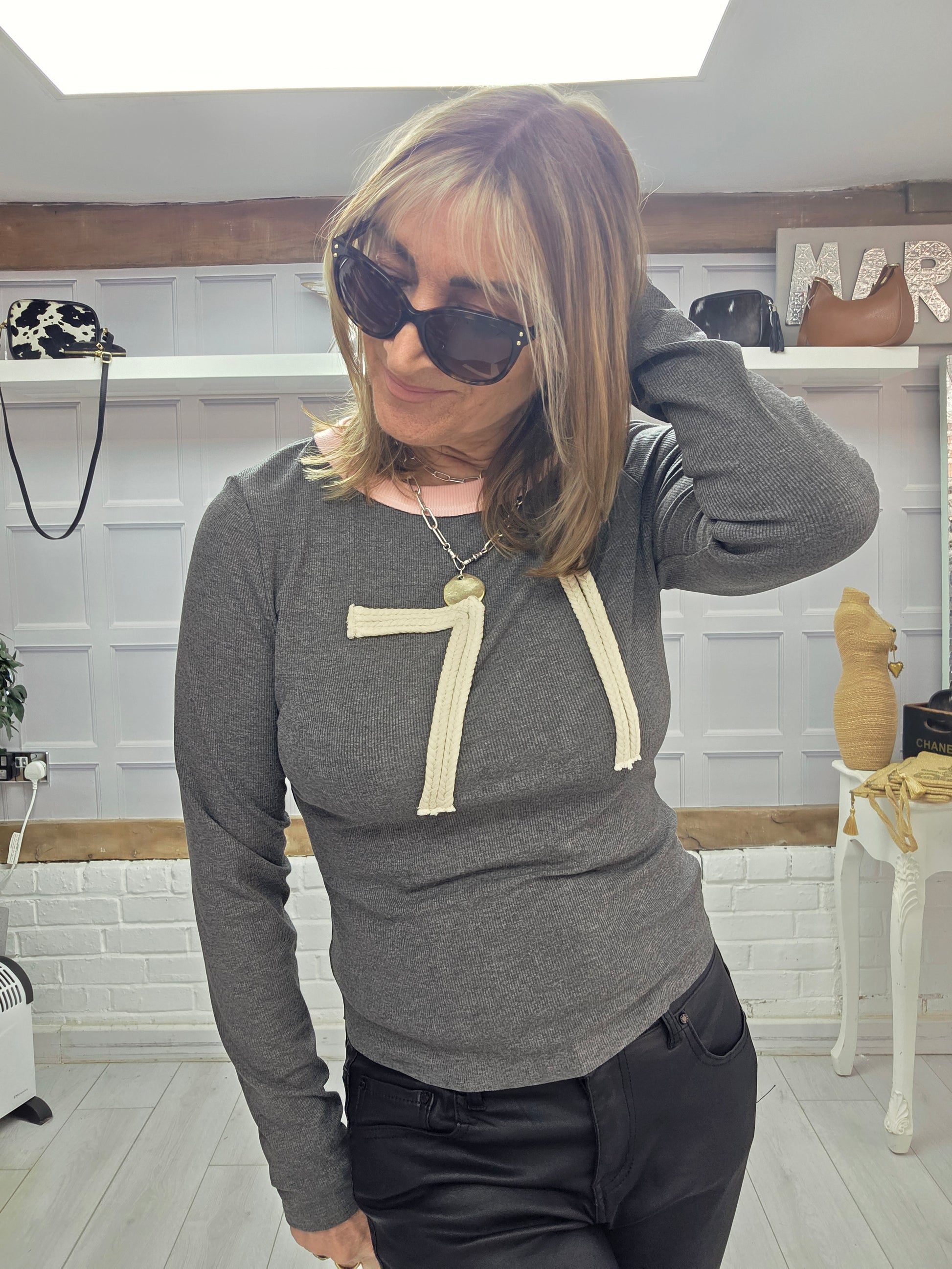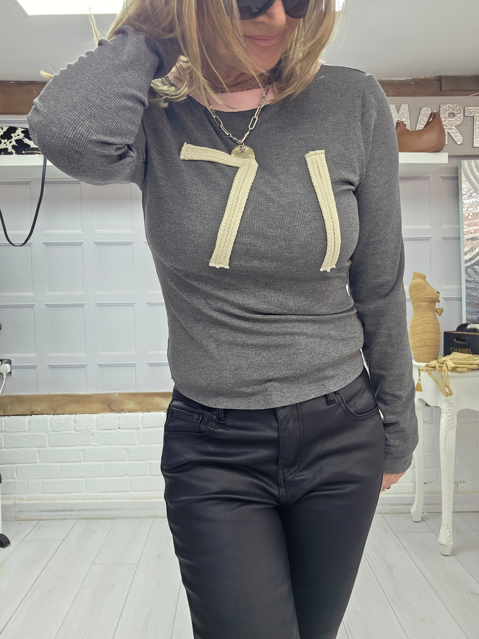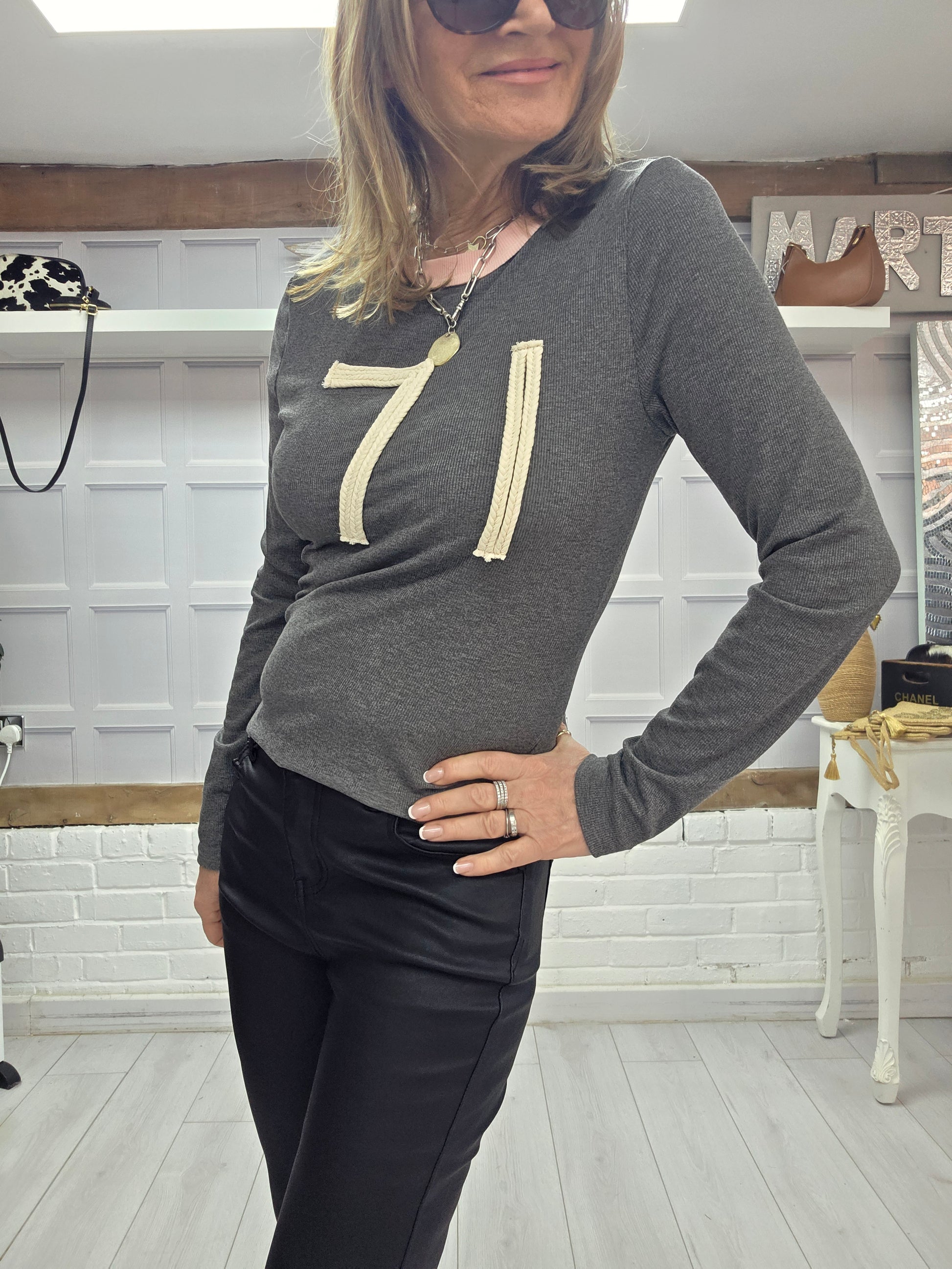 These are a great new arrival and we're loving the look. They're a slim fit stretchy T, with a round neck in a contrasting colour with 71 on the front. Perfect with any jeans, skinny's or a skirt. Model is wearing the M.