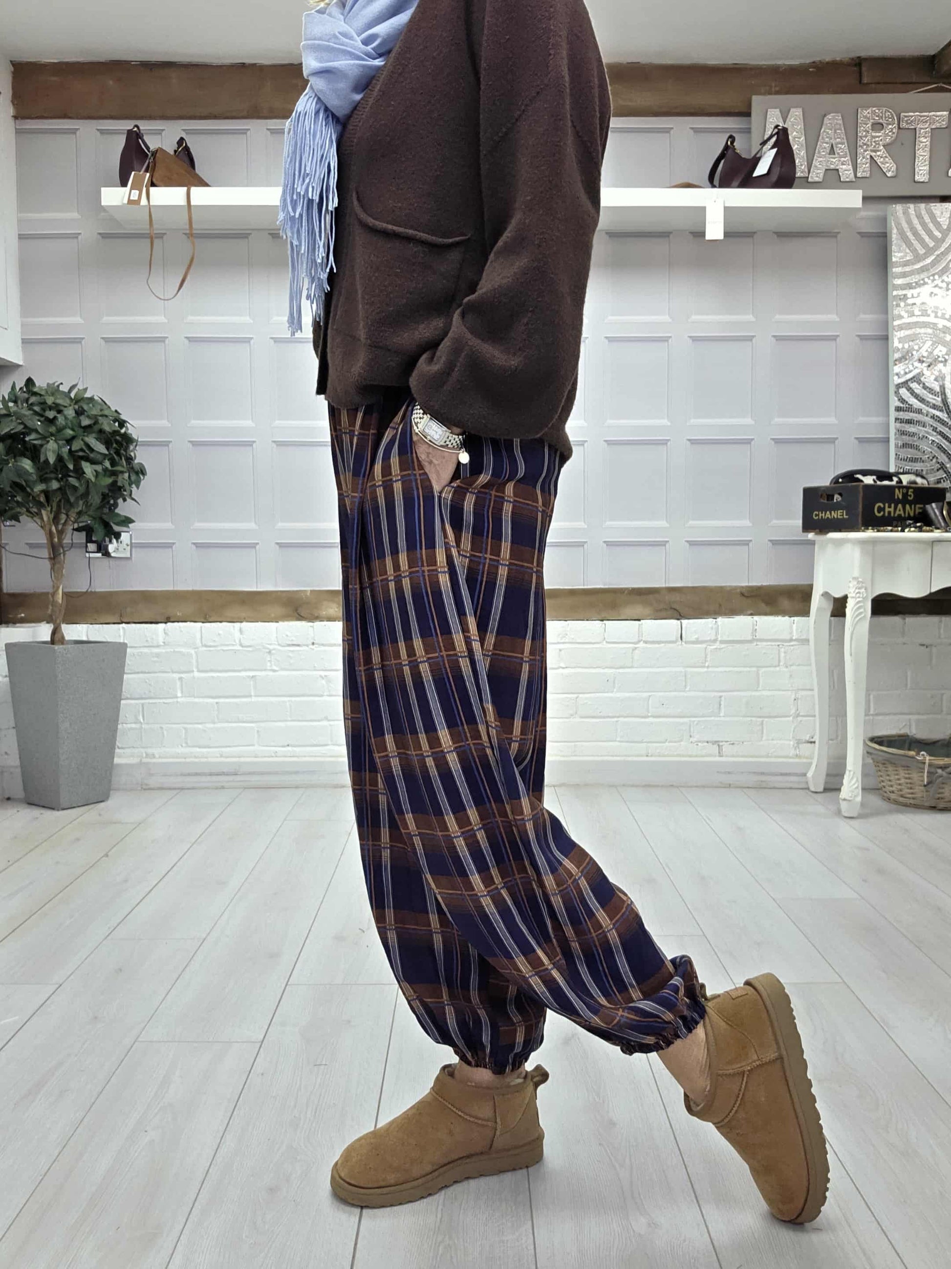 The Balmoral trousers are a new addition to the Winter Collection They have an elasticated waistband, two side pockets and are cuffed at the ankle. They are super comfy and coordinate with so much of our separates.