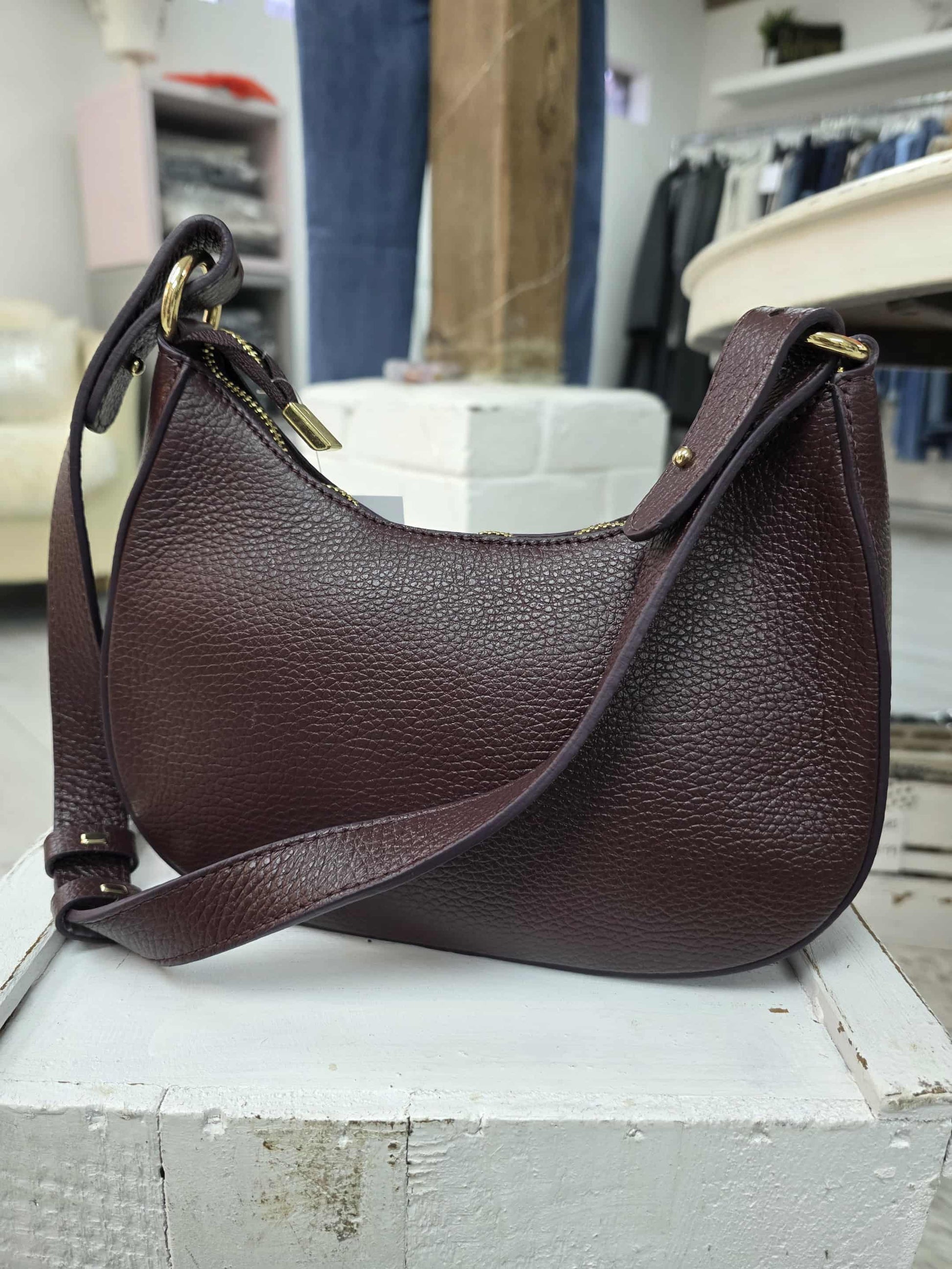 The Barletta bag is made of Italian leather and is a great find. The bag sits comfortably over the shoulder and has an adjustable strap. The bag is fully lined with a zip compartment inside and its an ideal bag for every day use. The bag is available in Chocolate Brown, Wine or Tan.