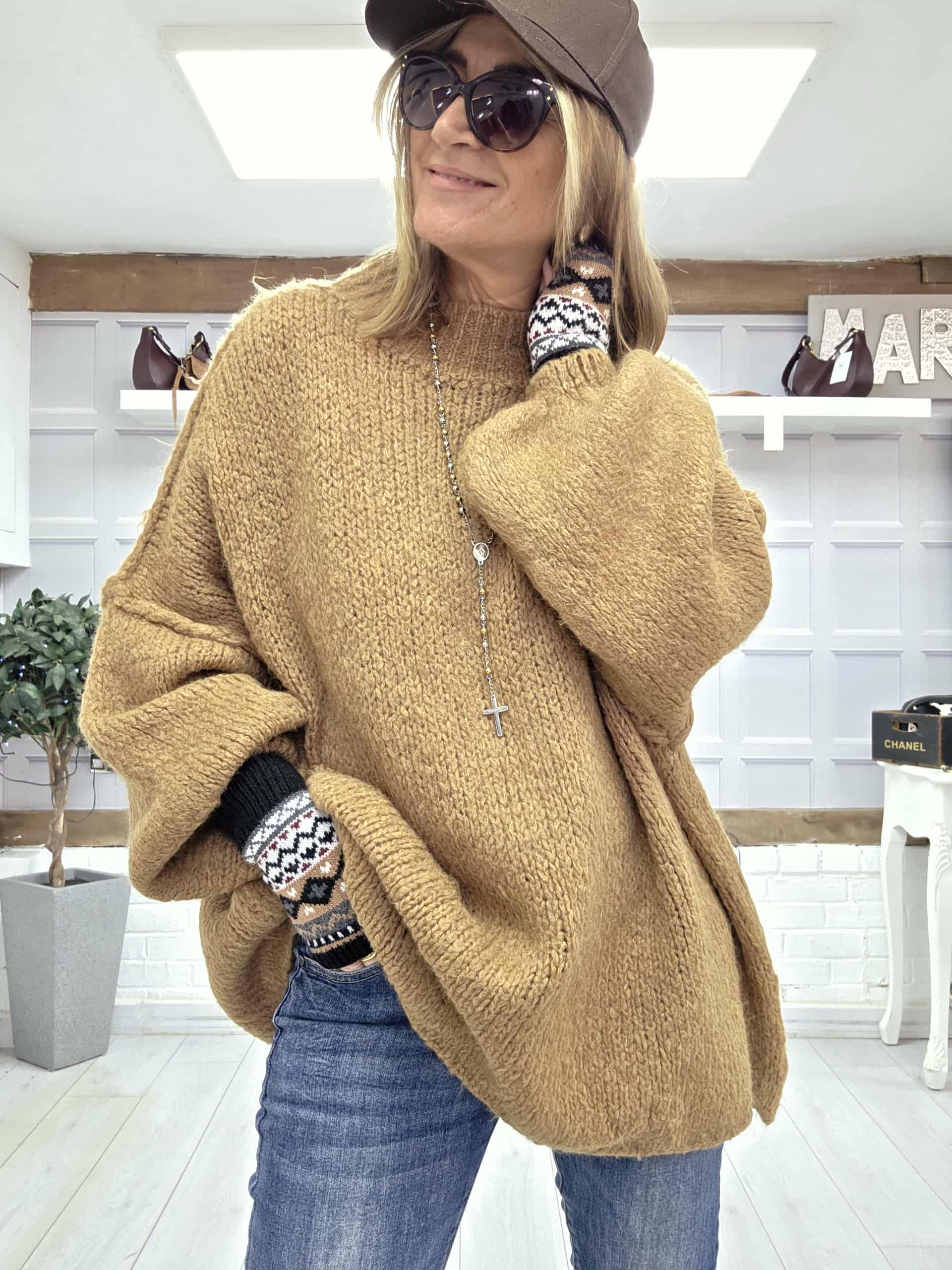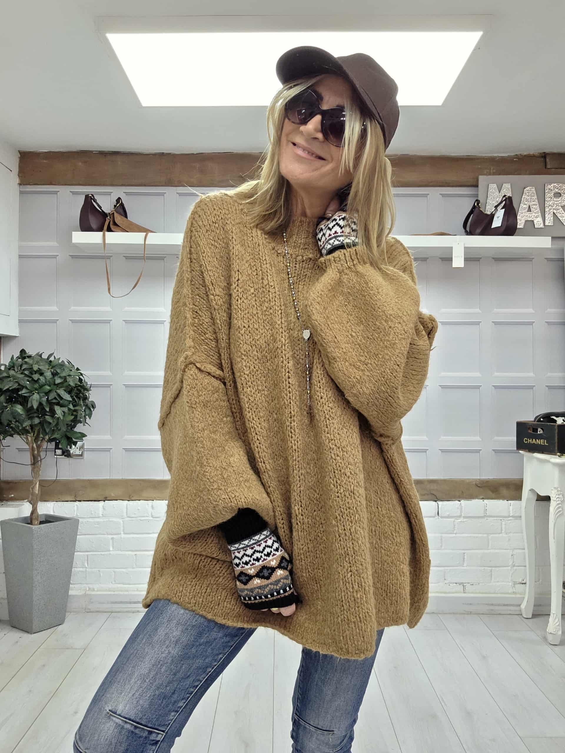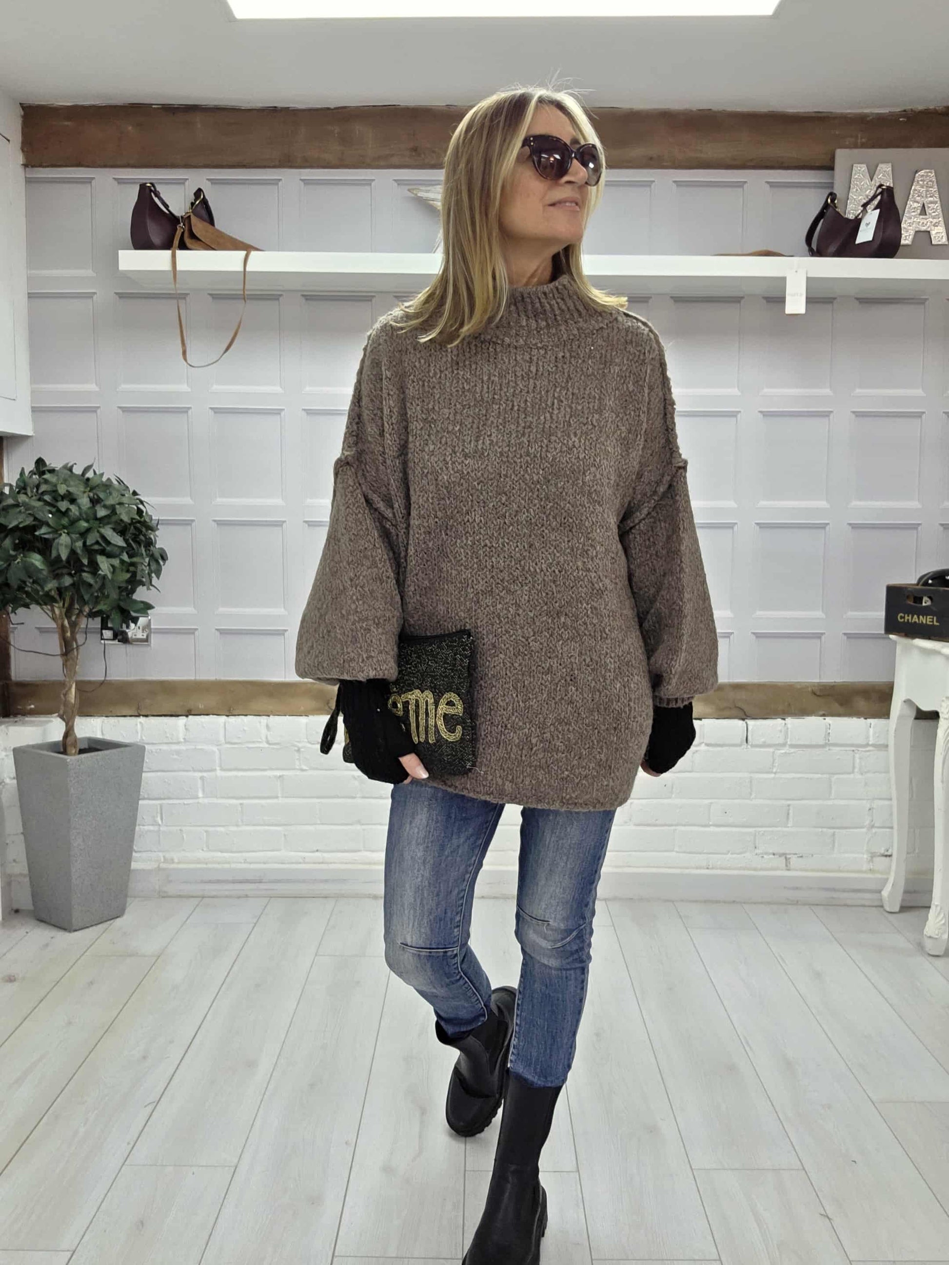 These jumpers are all the rage, so we've bought them back in some awesome seasonal colours. Chocolate Brown, Khaki and Burgundy. They have a funnel neck, raw edges, elasticated cuffs and are super cosy and warm!!! They will fit sizes 8 - 20 easily. Team them with leggings, jeans, skirts or joggers for a great look.
