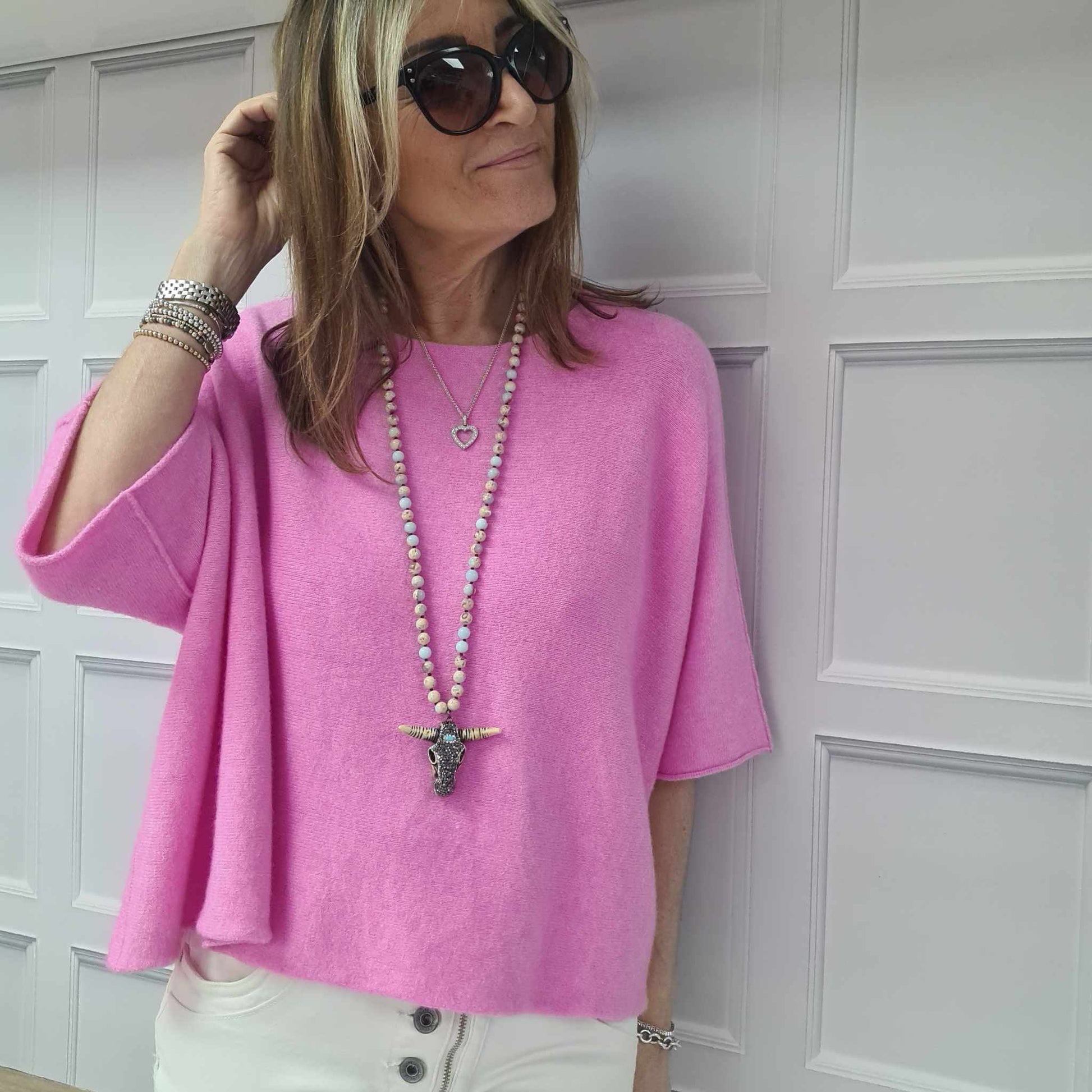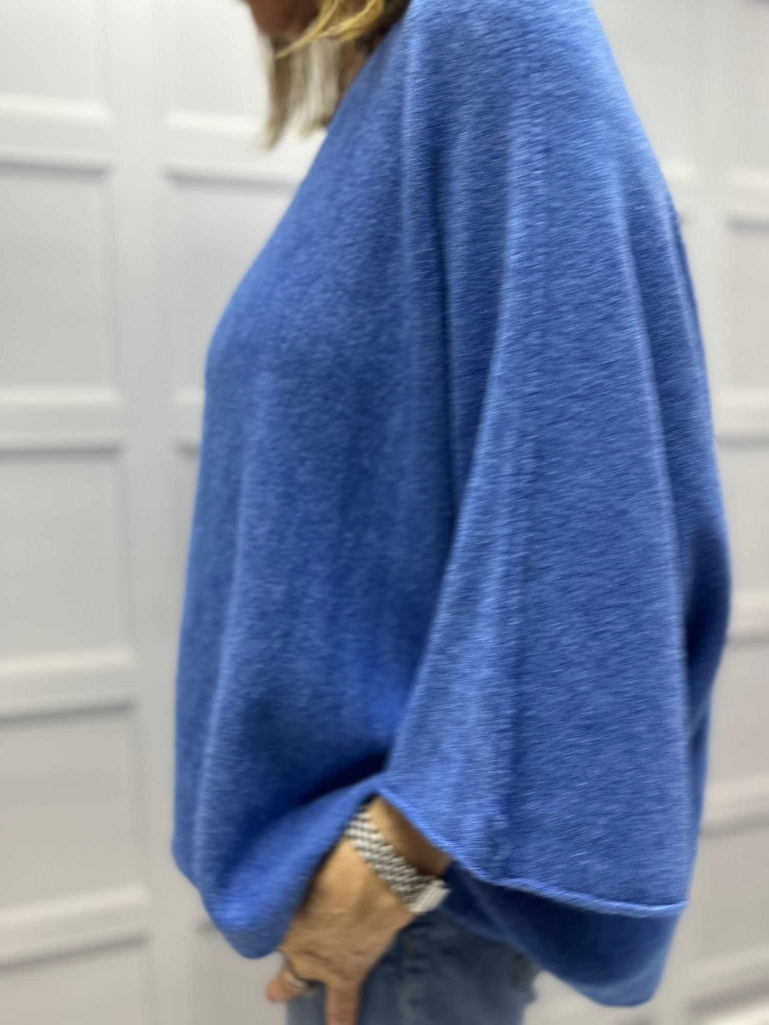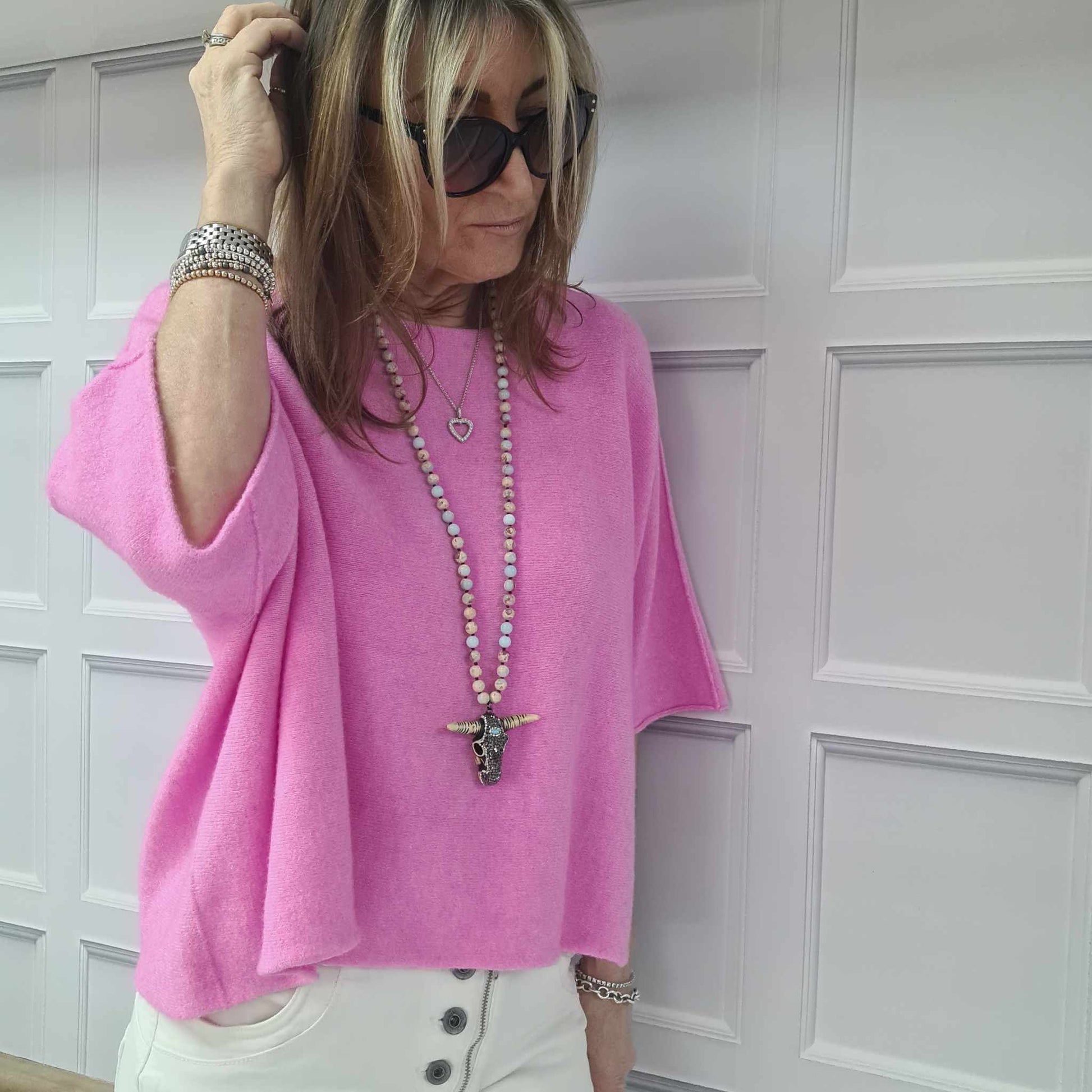 The Ivy jumpers are back! We've repeated this style as they go so well with so many items in our collection and are a great staple. These three quarter sweaters are ideal in the cooler months with a long sleeved T or shirt underneath or with just a vest top when warmer. Three gorgeous colours to choose from. The Jumpers are one size and will fit approximately 8-16.