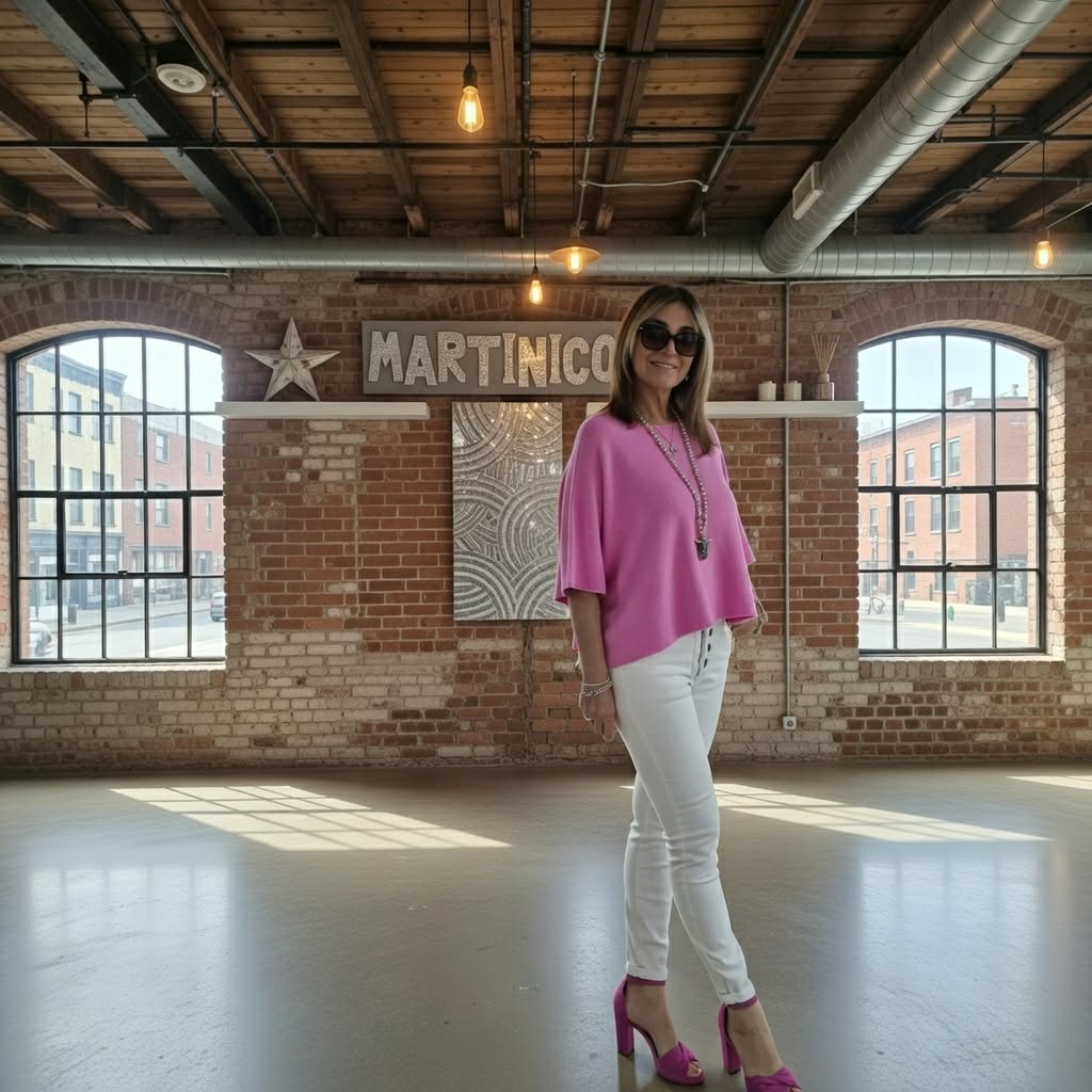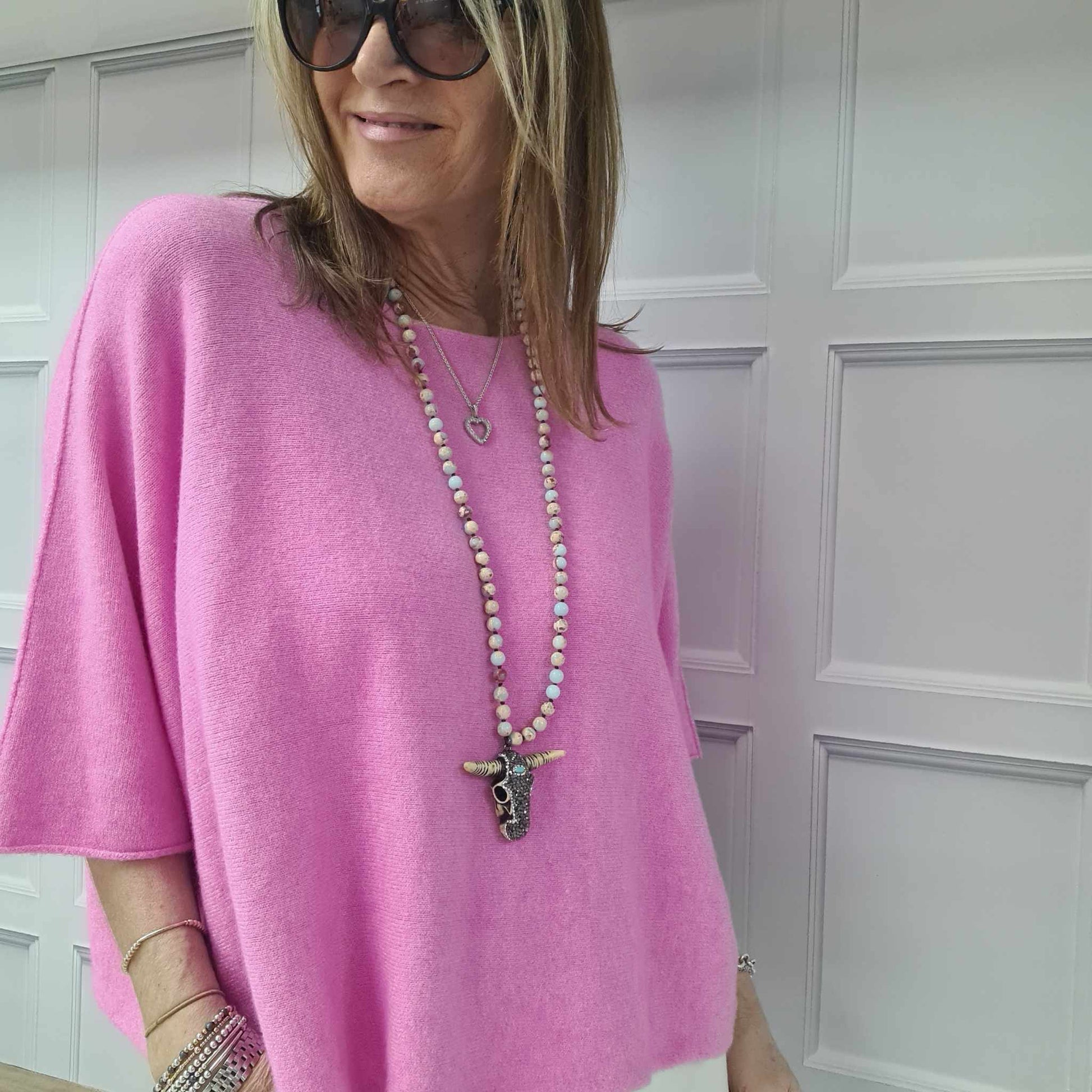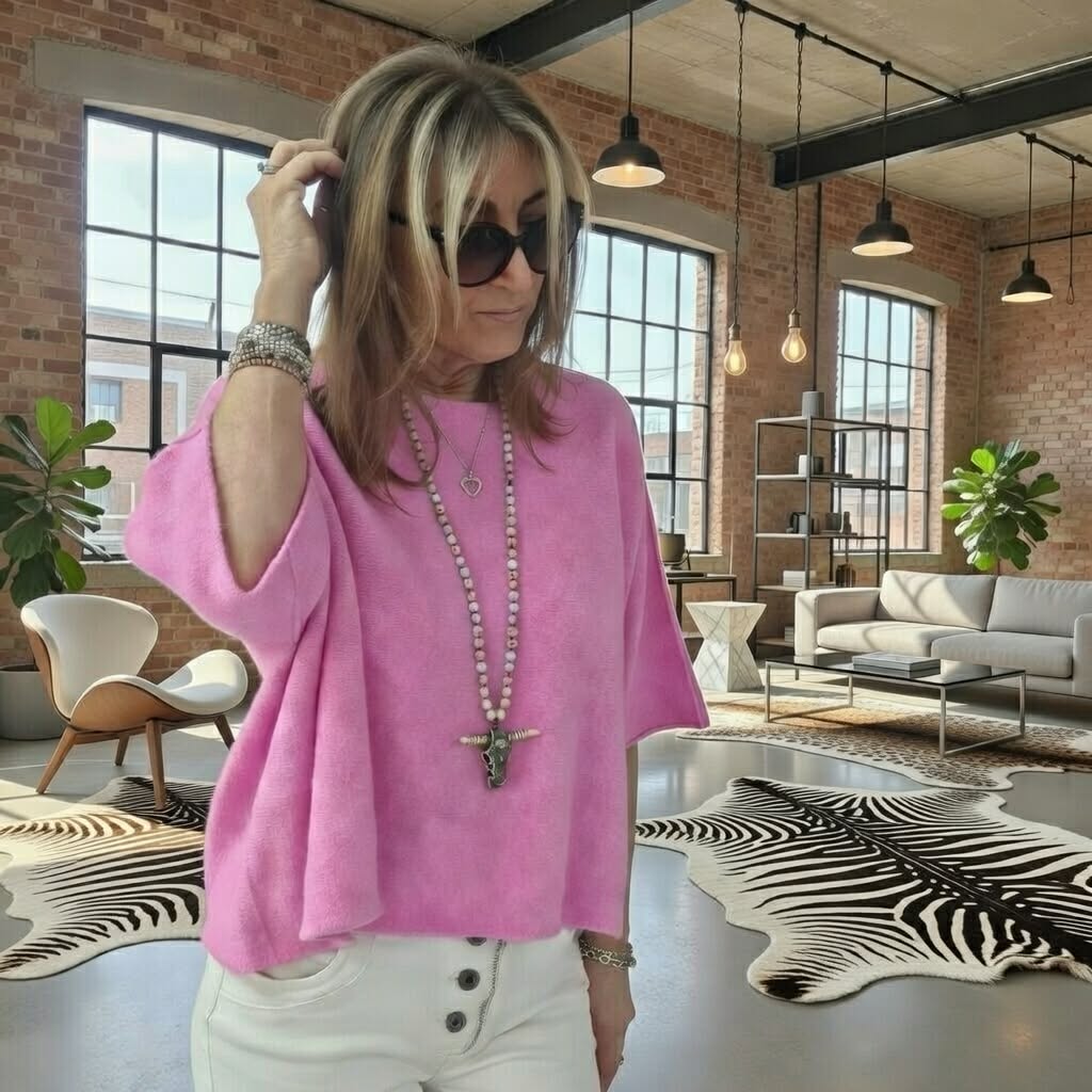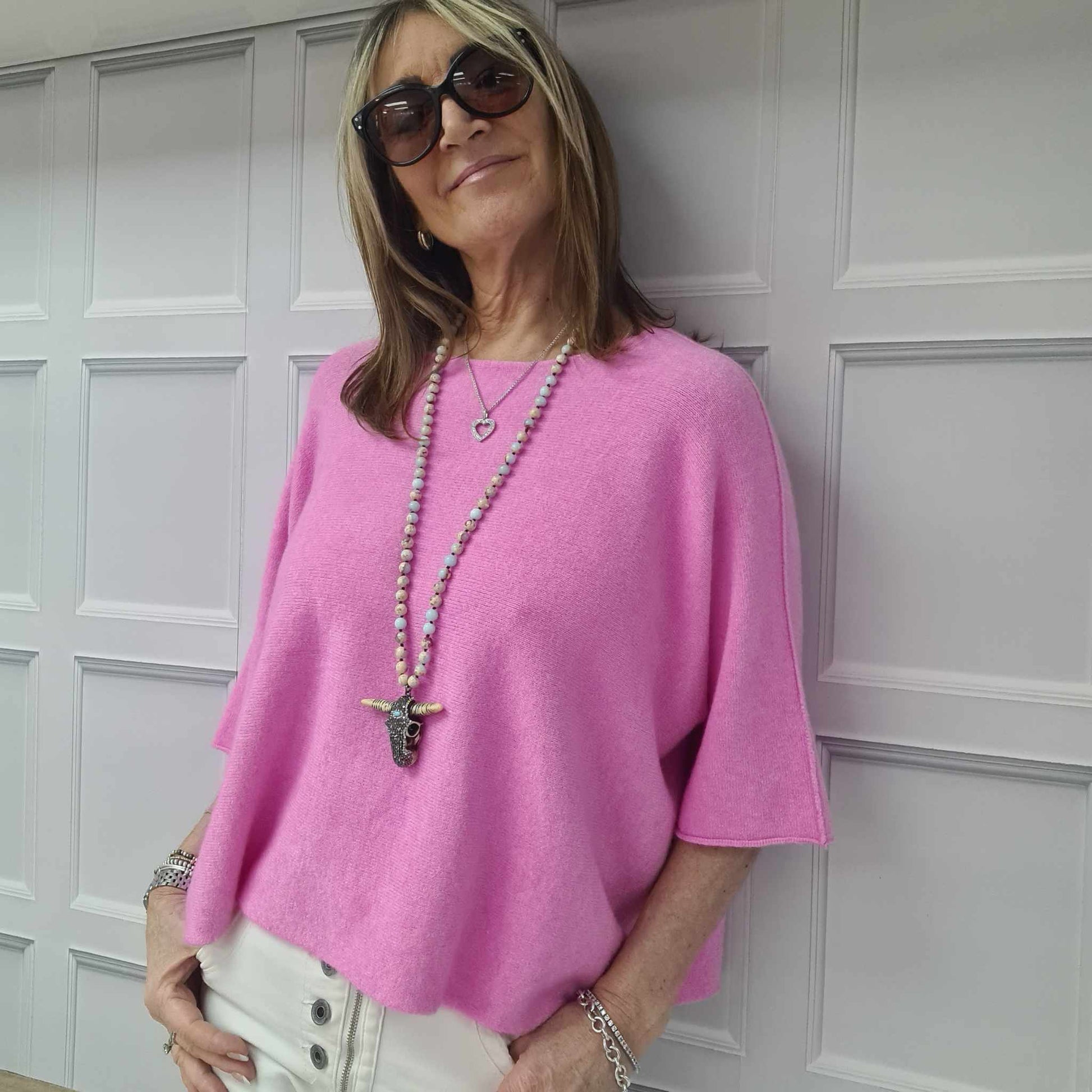 The Ivy jumpers are back! We've repeated this style as they go so well with so many items in our collection and are a great staple. These three quarter sweaters are ideal in the cooler months with a long sleeved T or shirt underneath or with just a vest top when warmer. Three gorgeous colours to choose from. The Jumpers are one size and will fit approximately 8-16.