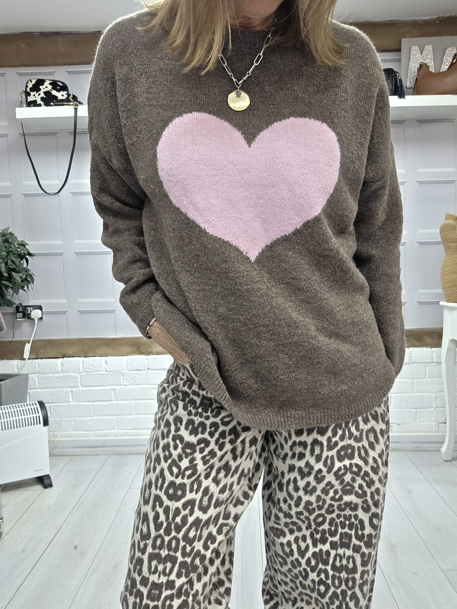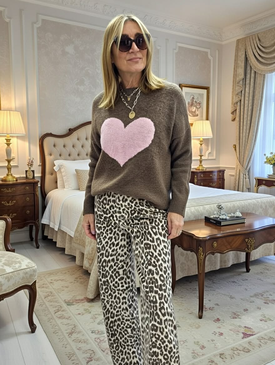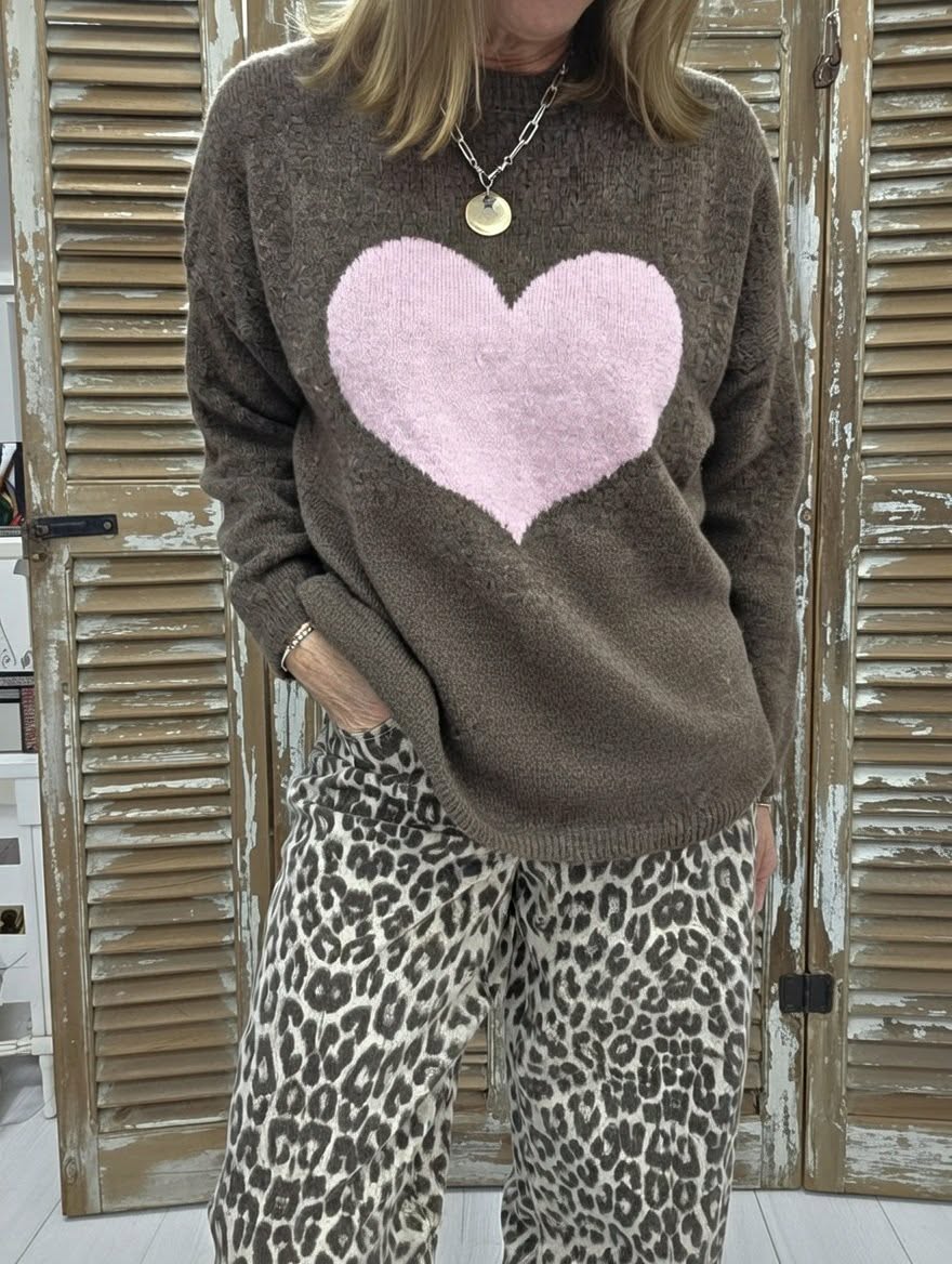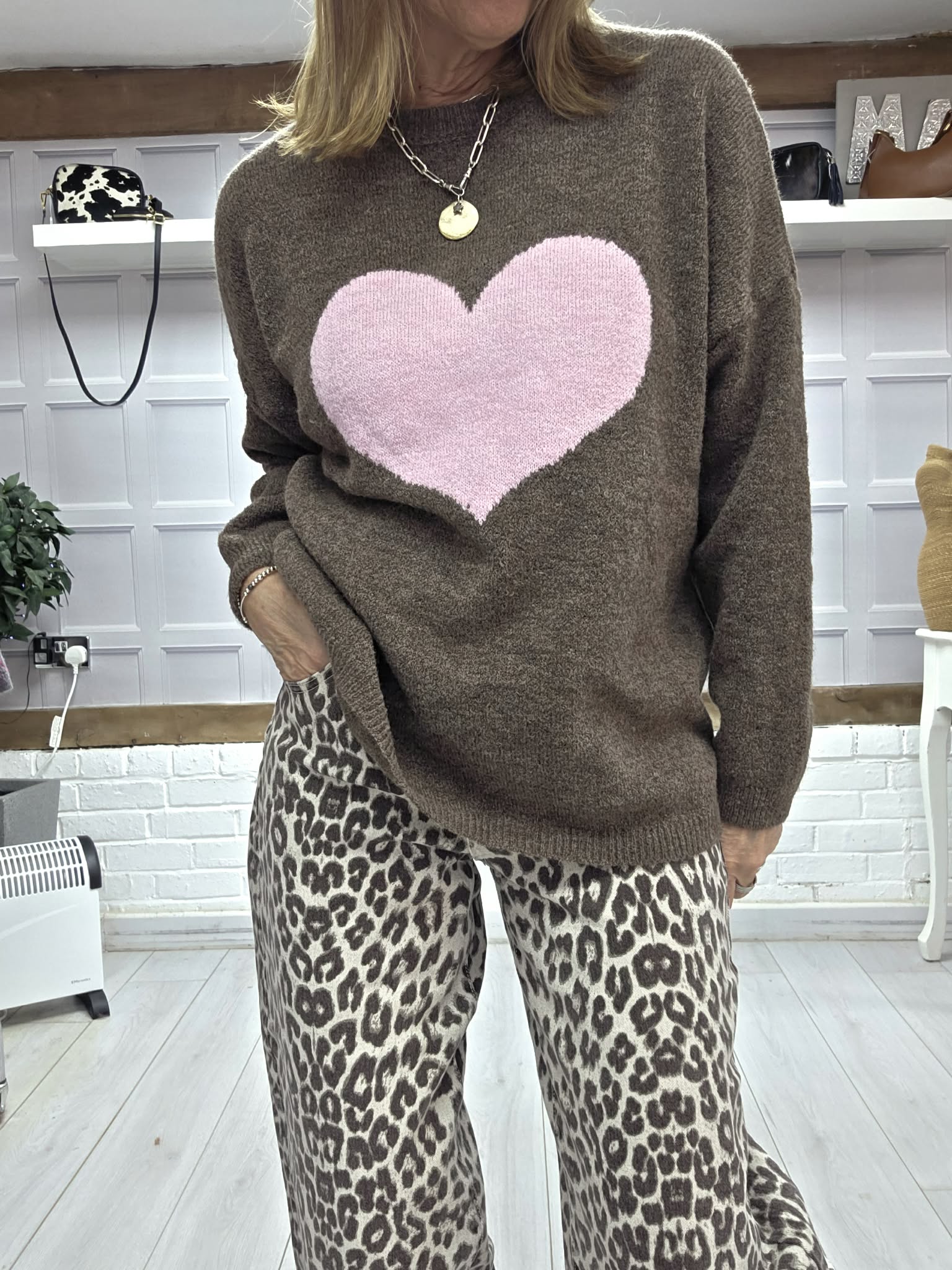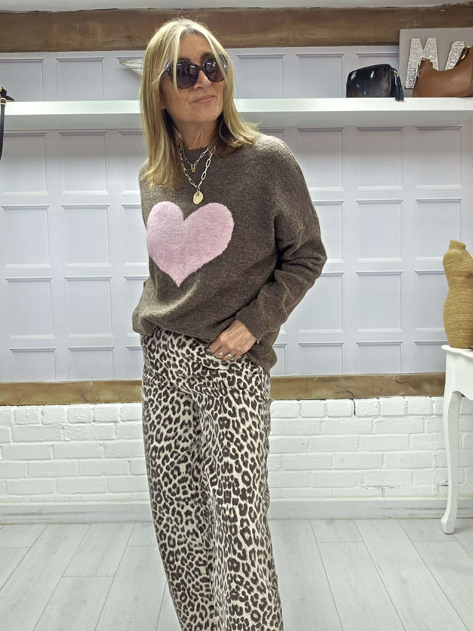 Our Roxy jumpers remind me of those sweets I used to buy as a kid! Loving these tones of brown and pink, they go so well together. The jumper is super soft and can be worn over jeans, joggers, or a satin skirt. We've teamed it with our new Animal Print Barrel Jeans and we think they make a great duo! The jumper is one size 8-16.