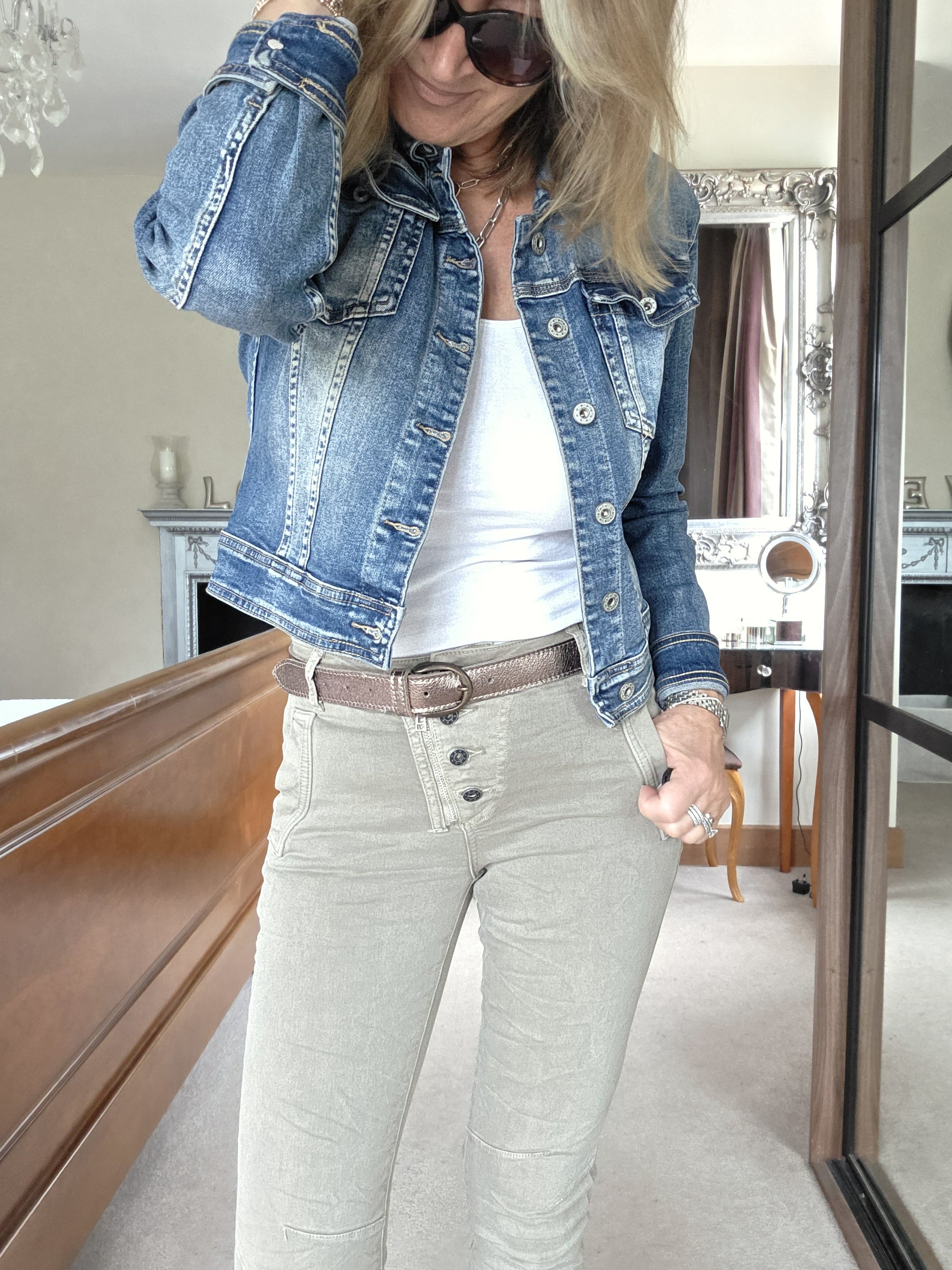 These are fab, we've stocked them before, but not in this amazing shade of stone, which has a lovely tone about it. They are a super fit, they are stretchy and amazinglly comfortable too! They have a zip and button fly and two pockets on the back with zip fastenings.