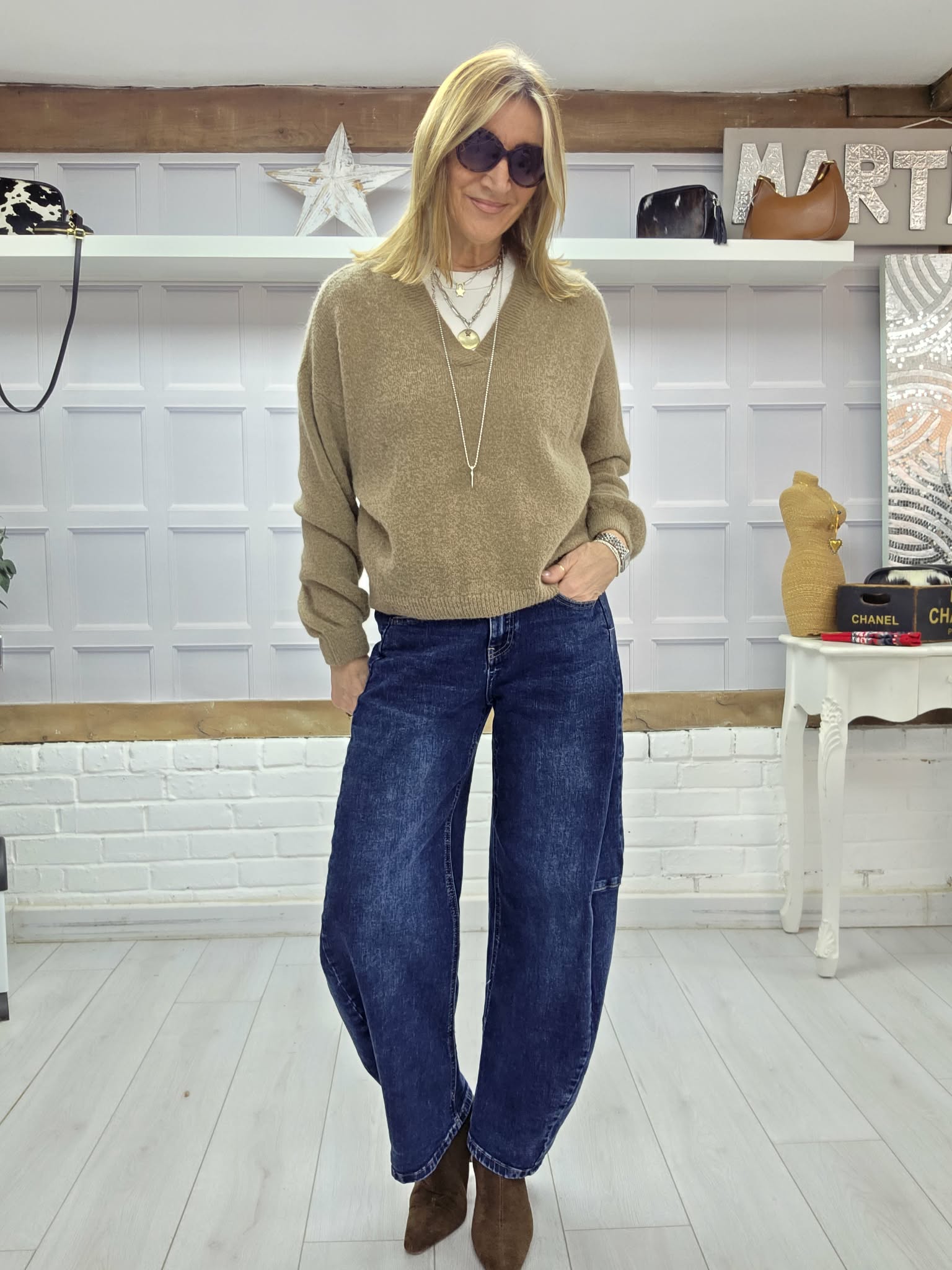 We've got more, and this time in the dark denim. They've proved to be uber popular and they have a great shape, not too barrel, but enough, to get that slouchy look. Pair them with a slouchy jumper, fitted T or shirt, trainers or heels for a great look. They are super stretchy too and the feedback has been great! So don't delay!!!