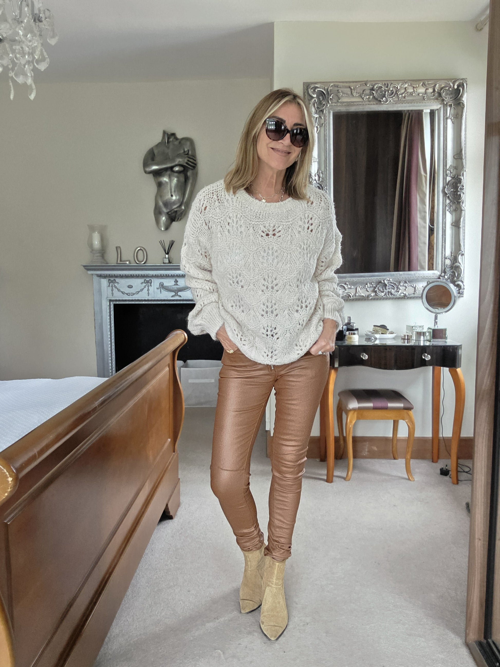 Yes! It's true the Wax Coated Melly jeans have landed from Italy and we've bagged them in this season's most trending colours! Yes! Chocolate Brown and Toffee!!!! All sizes from XS to XL available, while stocks last. They are super soft and super flattering and are incredibly comfortable with a great stretch. They have a button an zip fly fastening and two back pockets with zips.